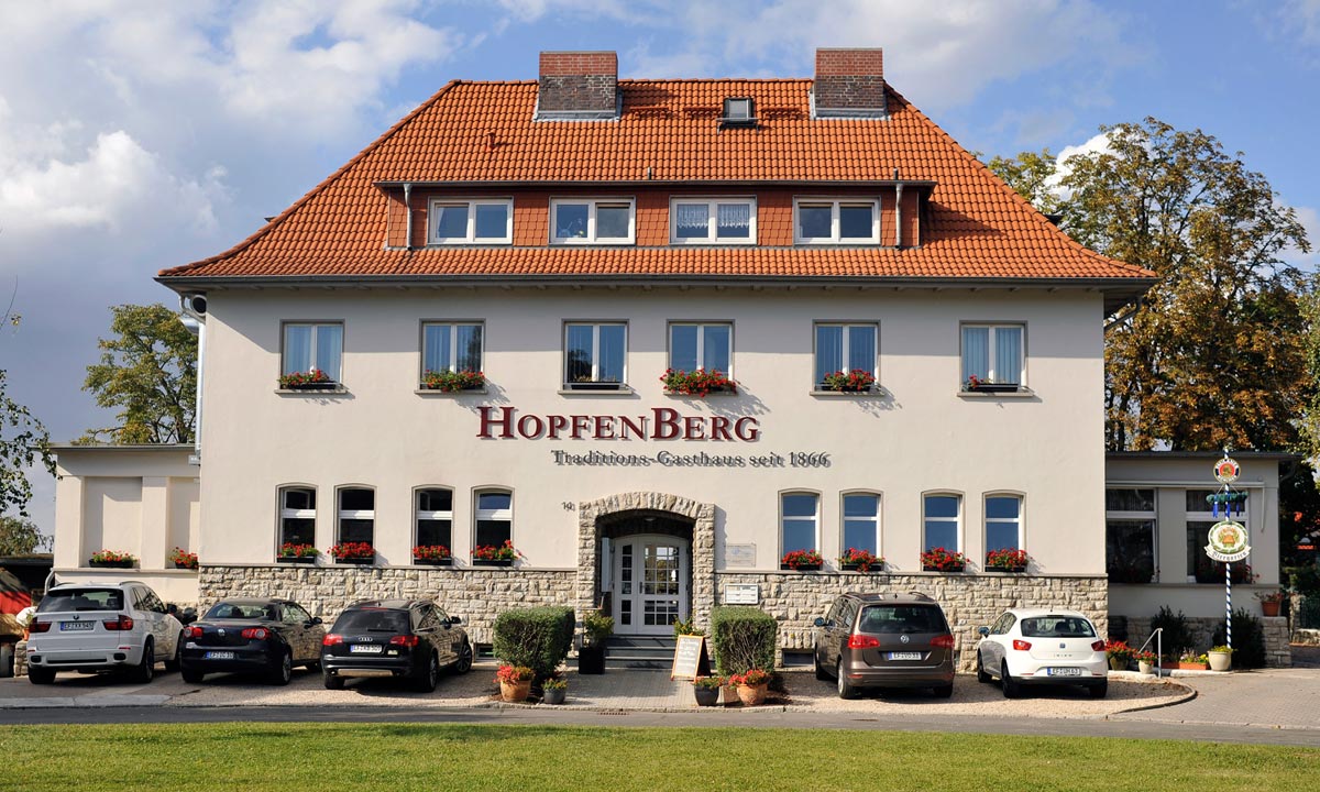 - biegen Sie rechts in den Zufahrtsweg zum "Gaststätte Hopfenberg" ein - Am Hopfenberg 14